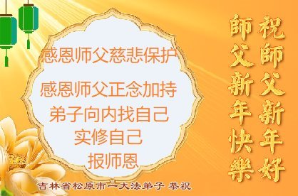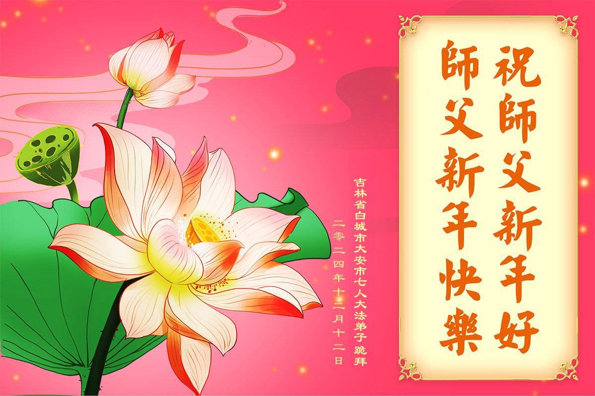 Falun Dafa praktikanti iz provincije Jilin s poštovanjem žele Učitelju Li Hongdžiju srećnu Novu godinu (19 čestitki)