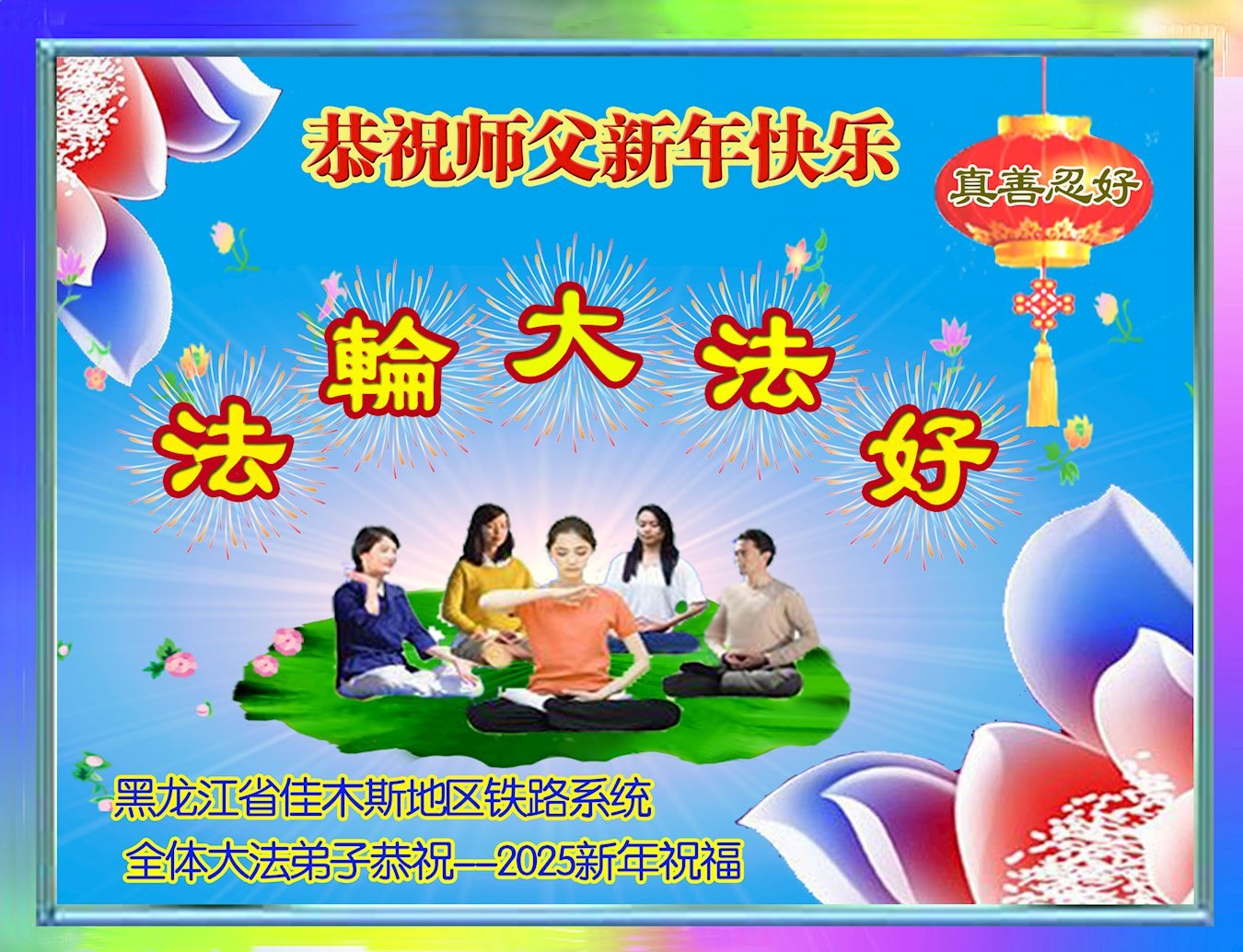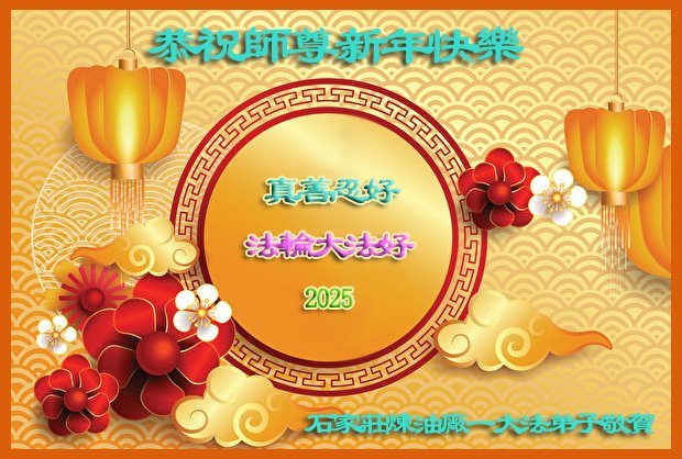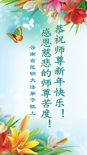 Nadolaskom Nove godine, praktikanti iz susjednih odbora grada Nanjinga, provincija Jiangsu, napisali su da znaju kako je Učitelj silno propatio za praktikante. “Kako vrijeme prolazi, mi praktikanti bismo također trebali biti odlučniji i zreliji. Naše zdravlje i vještine dolaze od Falun Dafa. Naša odlučnost da slijedimo Istinitost-Dobrodušnost-Toleranciju će nam pomoći nadvladati poteškoće i potaknuti naš stalni napredak. Hvala vam, Učitelju Li, i sretna Nova godina!”