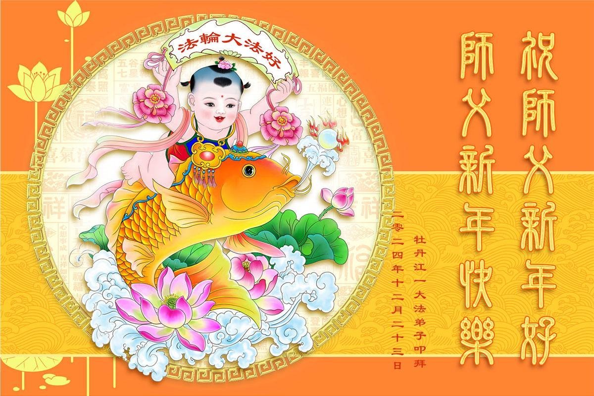 Falun Dafa praktikanti iz provincije Heilongjiang s poštovanjem žele Učitelju Li Hongdžiju srećnu Novu godinu (19 čestitki)