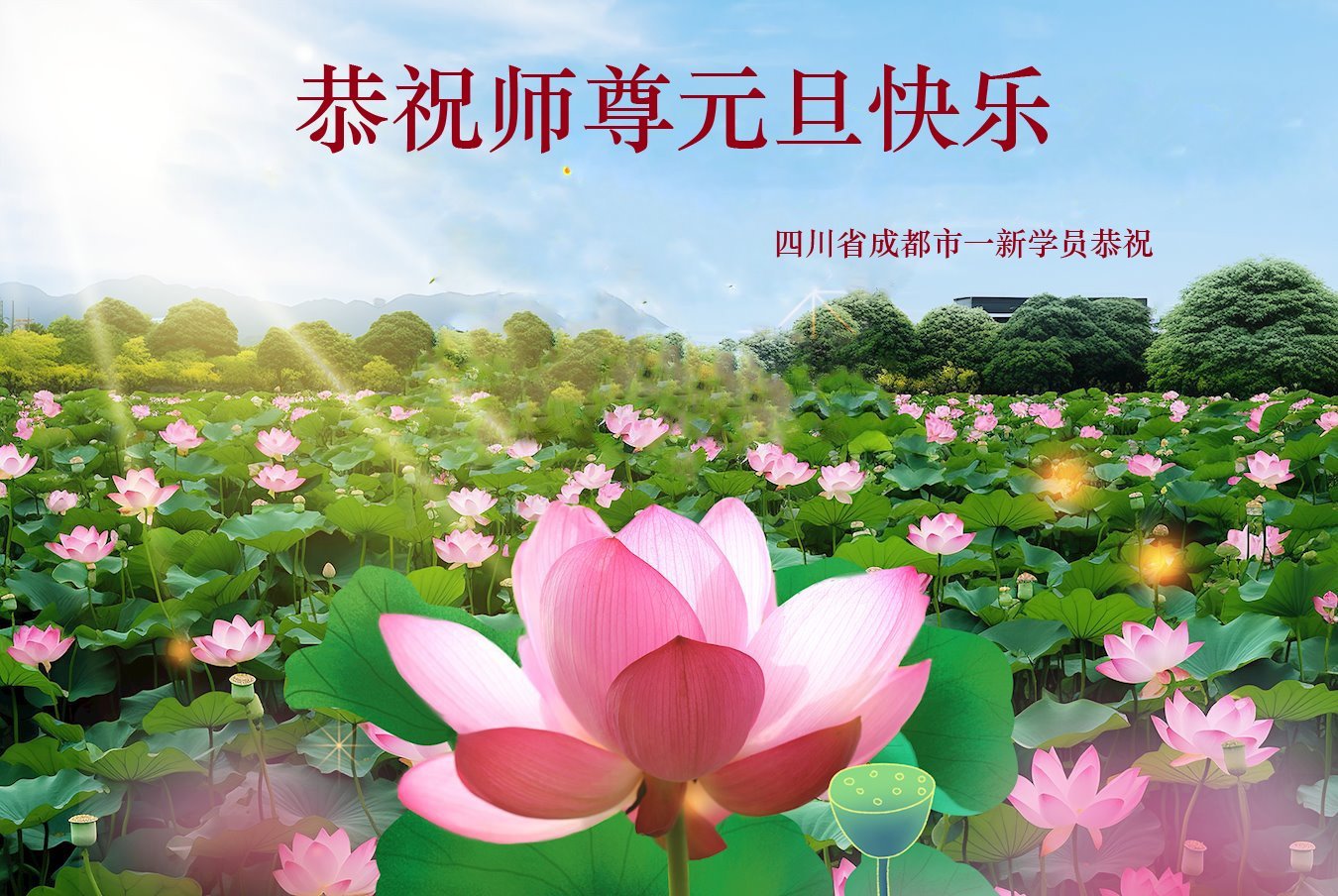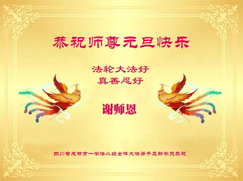 Dafa praktikanti i novi praktikanti iz grupe za učenje Fa u gradu Chengdu, provincija Sichuan, s poštovanjem žele Učitelju sretnu Novu godinu!