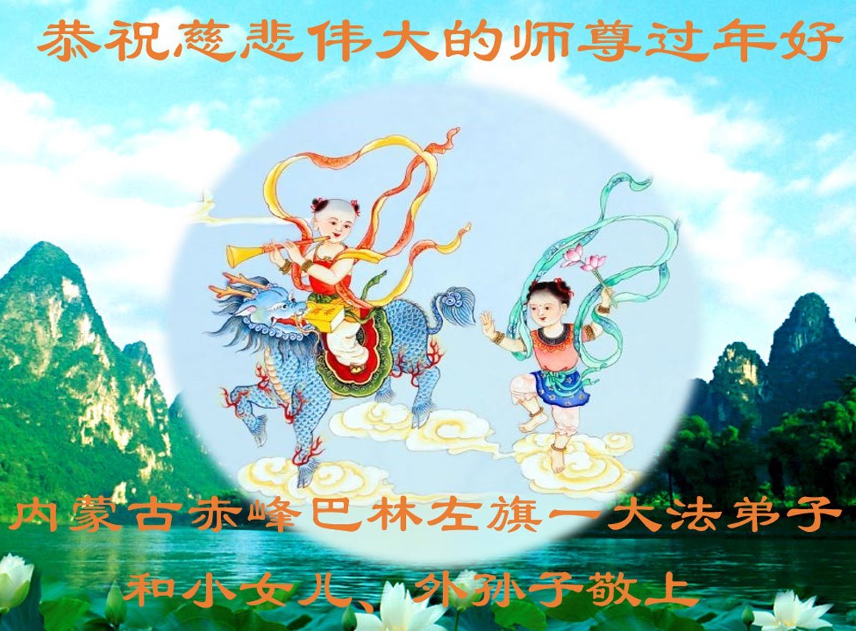 Falun Dafa praktikanti iz autonomne regije Unutrašnja Mongolija s poštovanjem žele Učitelju Li Hongdžiju srećnu kinesku Novu godinu (19 čestitki)