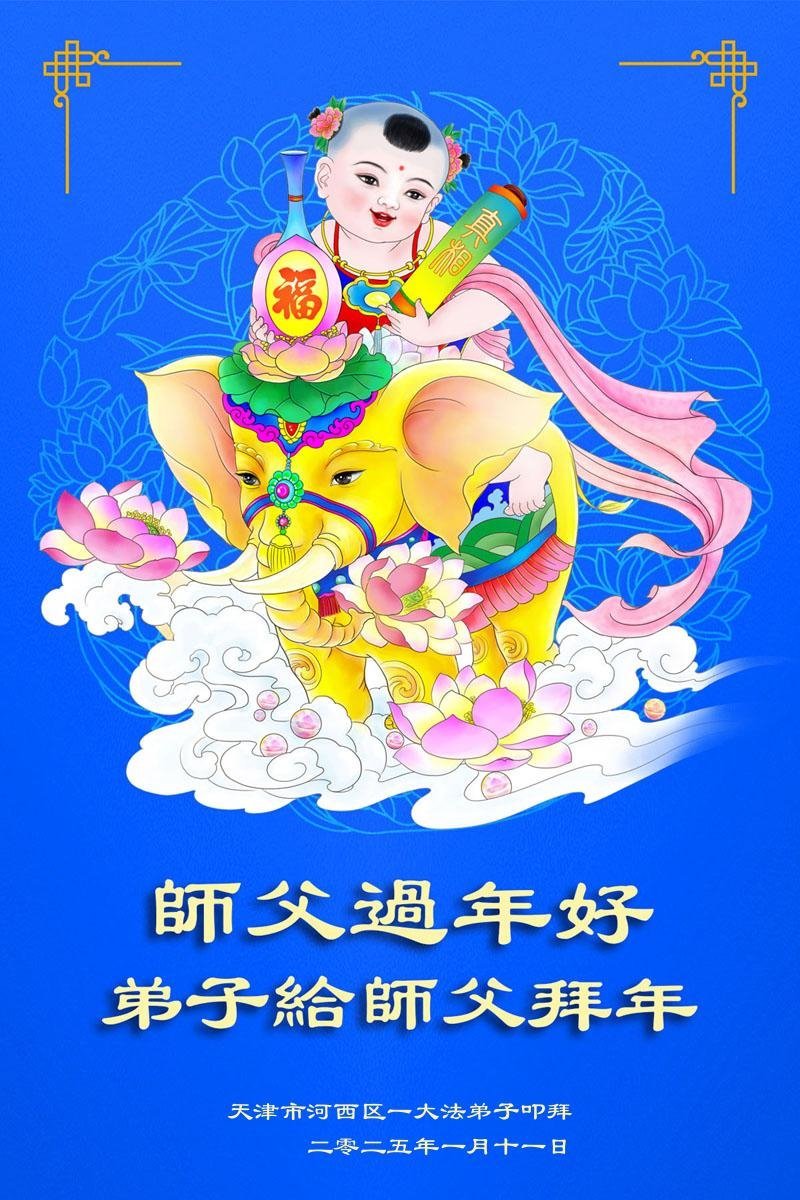 Falun Dafa praktikanti iz Tjenđina s poštovanjem žele Učitelju Li Hongdžiju srećnu kinesku Novu godinu (19 čestitki)