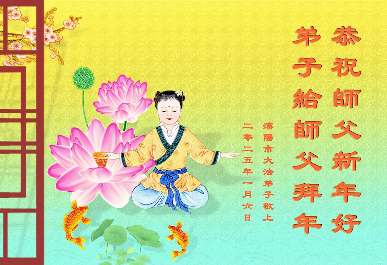 Praktikanti Falun Dafe iz grada Šenjang s poštovanjem žele Učitelju Li Hongdžiju srećnu kinesku Novu godinu (21 česitka)