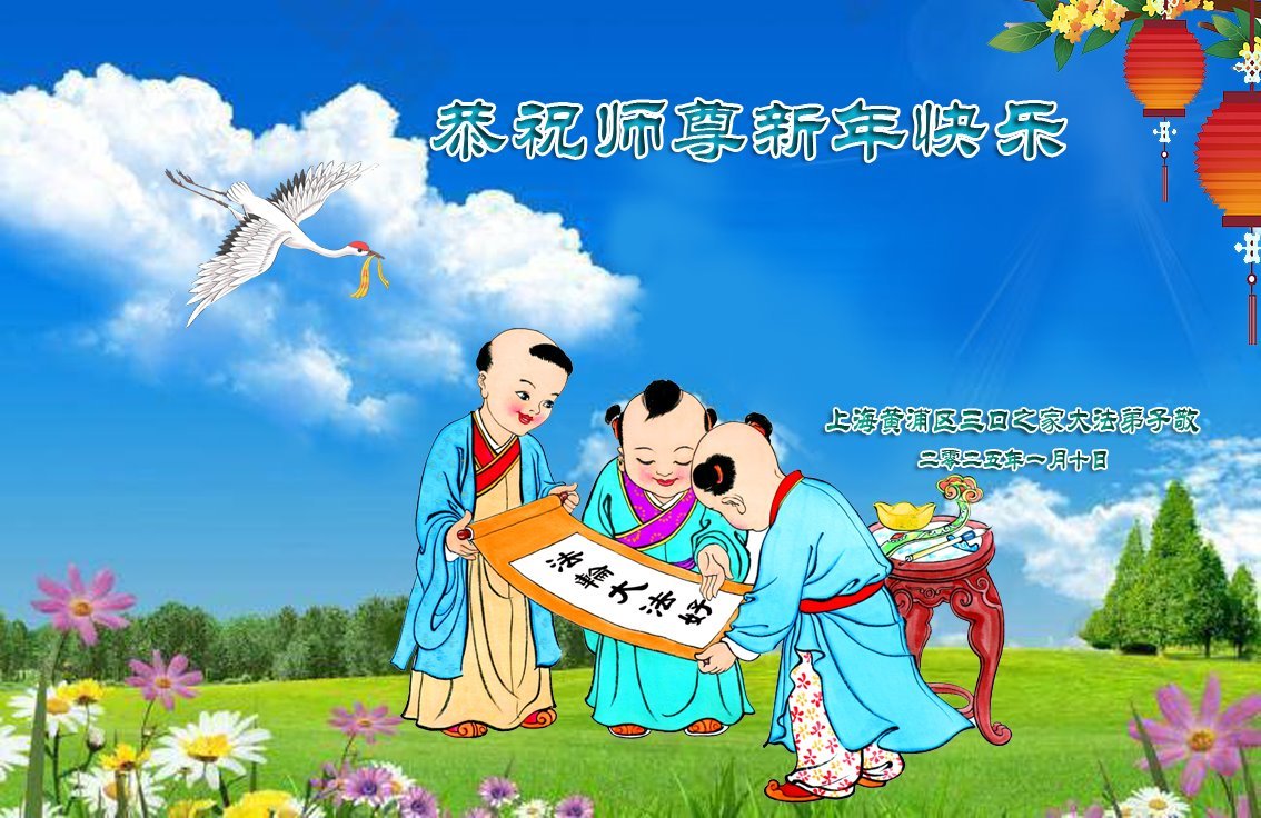 Falun Dafa praktikanti iz Šangaja s poštovanjem žele Učitelju Li Hongdžiju srećnu kinesku Novu godinu (22 čestitke)