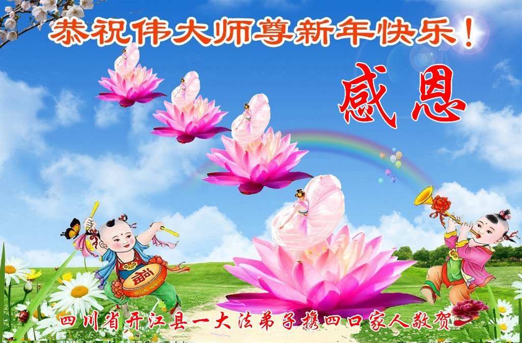 Falun Dafa praktikanti iz provincije Sečuan s poštovanjem žele Učitelju Li Hongdžiju srećnu kinesku Novu godinu (18 čestitki)