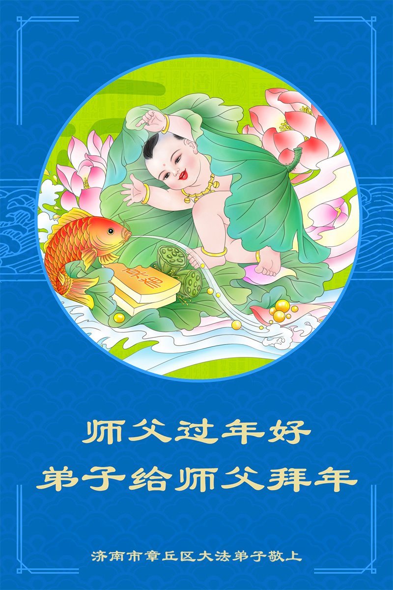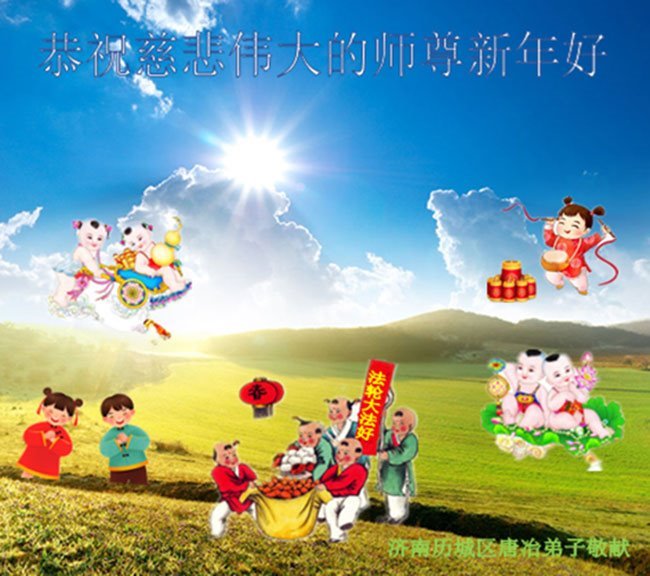 Falun Dafa praktikanti iz grada Jinan s poštovanjem žele Učitelju Li Hongdžiju srećnu kinesku Novu godinu (18 čestitki)