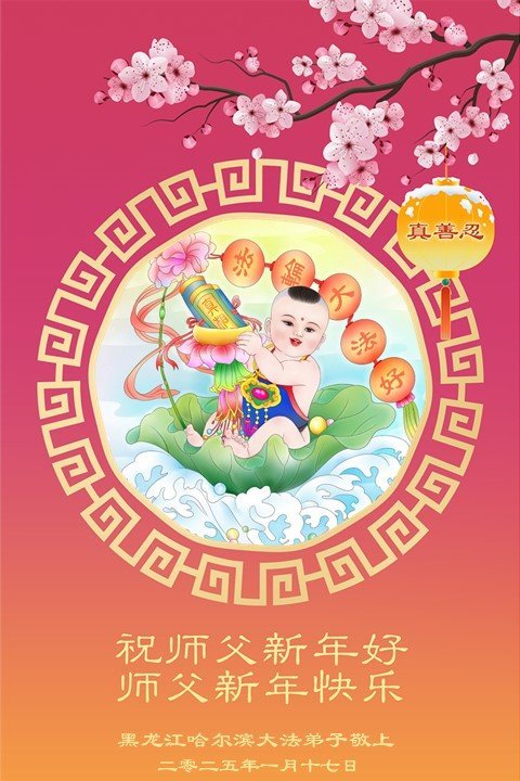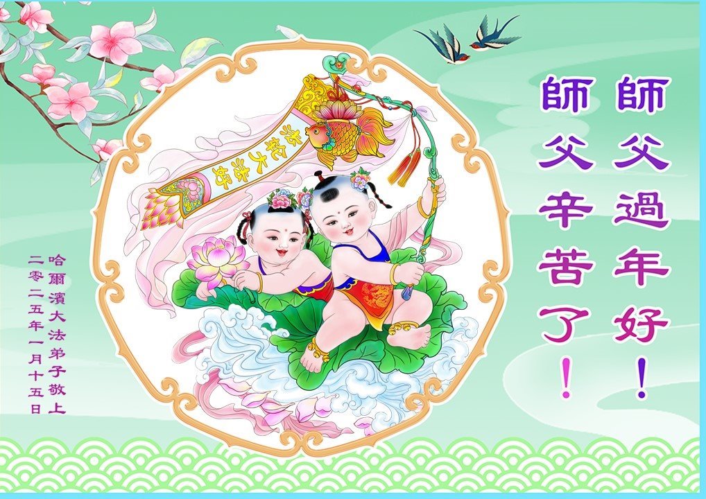 Falun Dafa praktikanti iz grada Harbina s poštovanjem žele Učitelju Li Hongdžiju srećnu kinesku Novu godinu (20 čestitki)