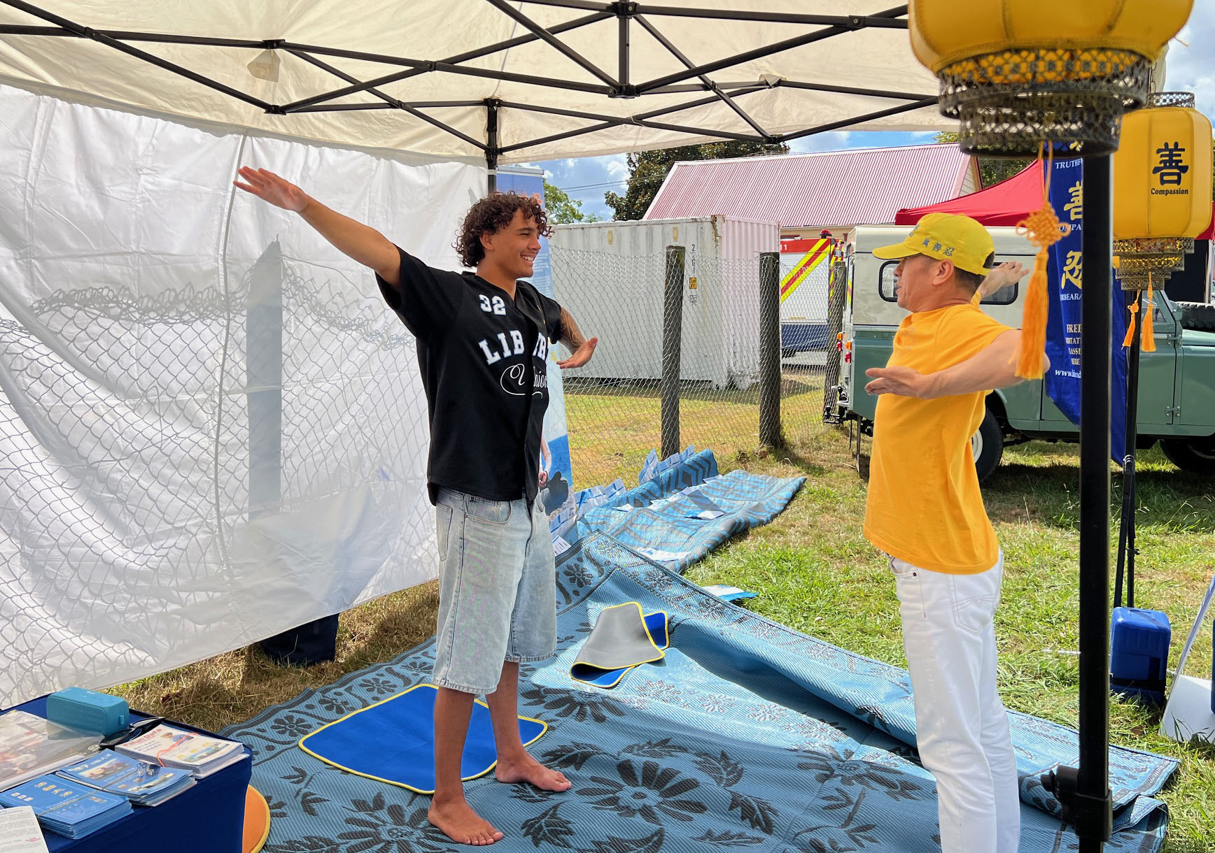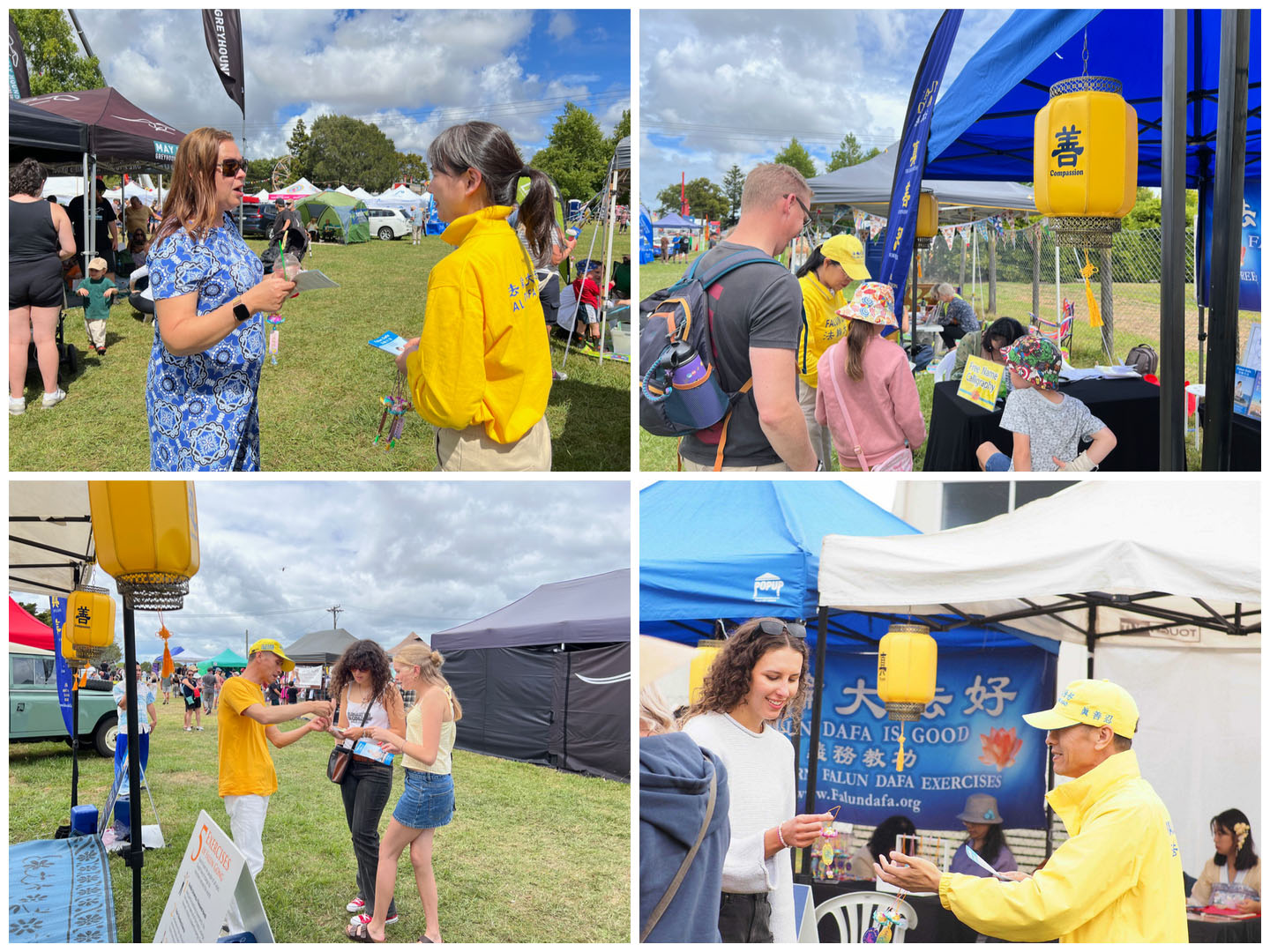 Falun Dafa praktikanti sudjelovali su na godišnjem sajmu Poljoprivrednog i hortikulturnog društva okruga Kumeu za vikend od 8. do 9. ožujka 2025. Ovaj popularni obiteljski događaj prikazuje poljoprivredu, izložbe životinja i natjecanja, glazbu i razne kulturne ponude. Falun Dafa štand je bio podijeljen u pet odjeljaka: kaligrafija, izrada origami lotosa, tradicionalno rezanje papira i demonstracije i podučavanje Falun Dafa vježbi . Mnogi su posjetitelji u subotu učili vježbe.