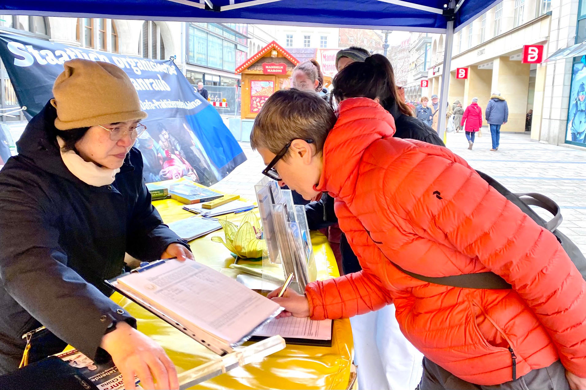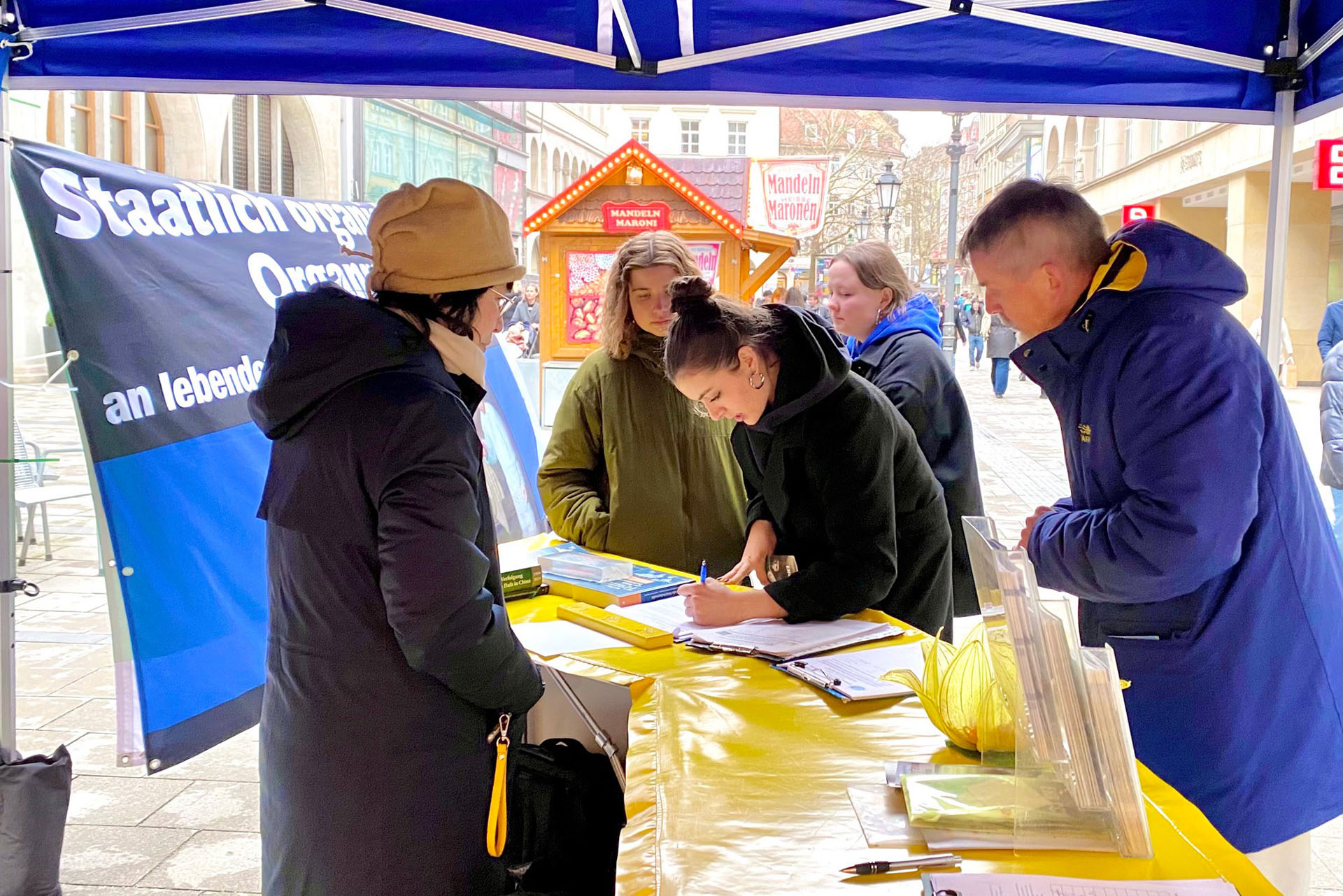 Lokalni Falun Gong praktikanti su 15. marta 2025. održali događaj u Sendlinger Strasse, pešačkoj ulici u centru Minhena, kako bi predstavili ovu duhovnu praksu. Oni su govorili ljudima o progonu Komunističke partije Kine (KPK) i prisilnom vađenju organa koje cilja na praktikante. Lokalno stanovništvo osudilo je progon i podržalo njihove napore da ga razotkriju.