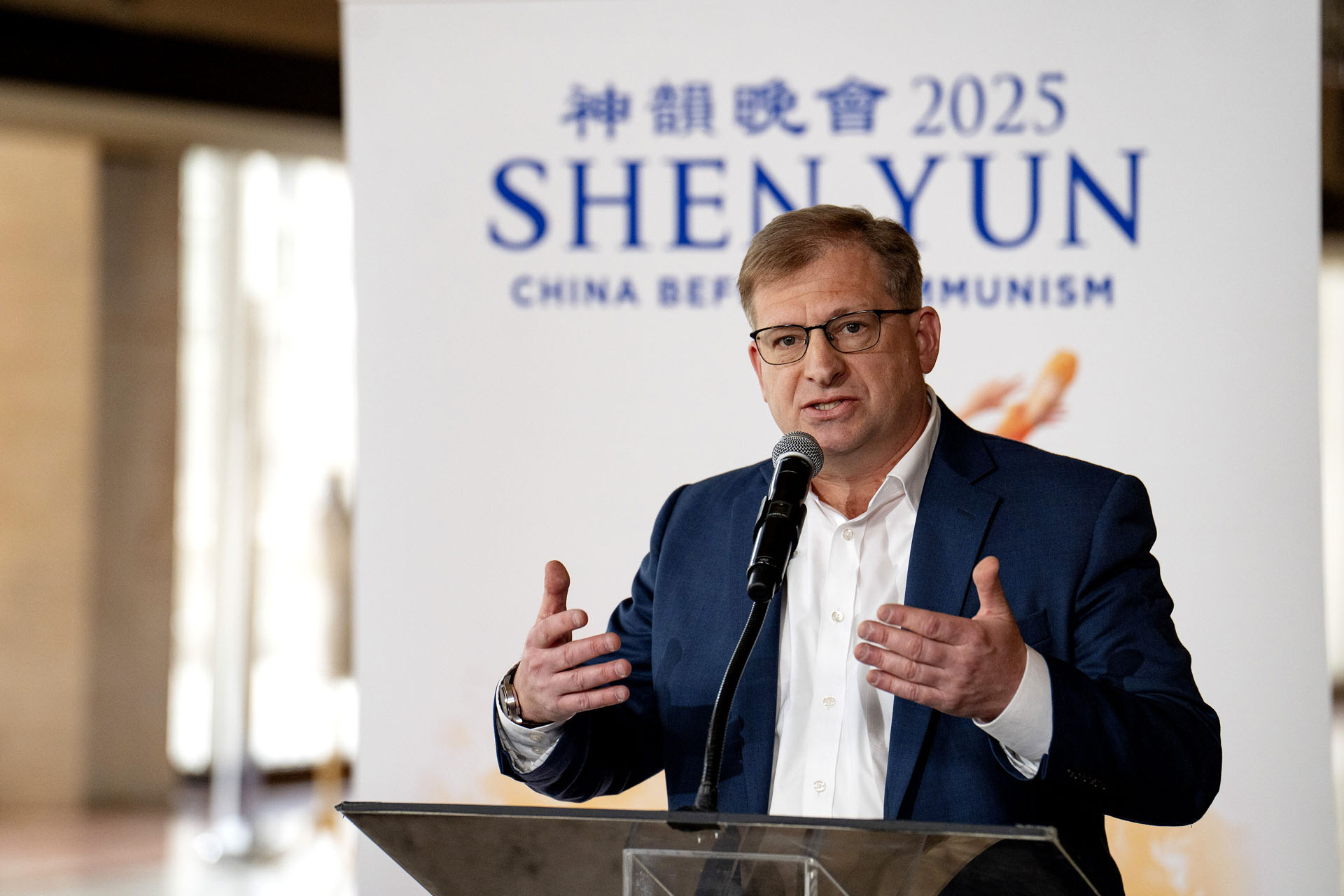 26. marta 2025. godine, u njujorškom Linkoln centru, nekoliko sati pre svog prvog nastupa na tom mestu, Shen Yun Performing Arts je održao konferenciju za štampu kako bi razotkrio sistemsku represiju Pekinga nad ovom scenskom trupom.
