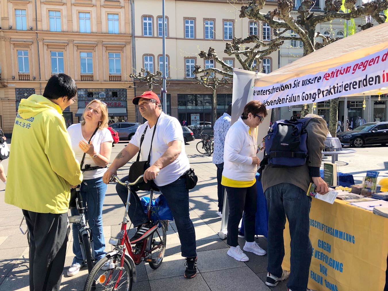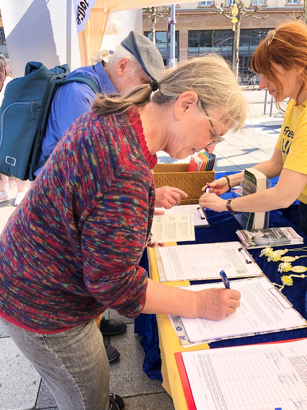 Mnogi su se ljudi zaustavili na štandu tijekom ova dva skupa radi više informacija. Lea iz Frankfurta bila je u posjetu prijateljima u Heidelbergu i rekla je da je čula za Falun Dafa na turističkom mjestu u Heidelbergu prije dvije godine. “Teško je povjerovati da KPK tako žestoko progoni nevine ljude jer meditiraju”, rekla je. “Brutalnost, uključujući prisilno vađenje organa, je užasna i mora prestati.”
