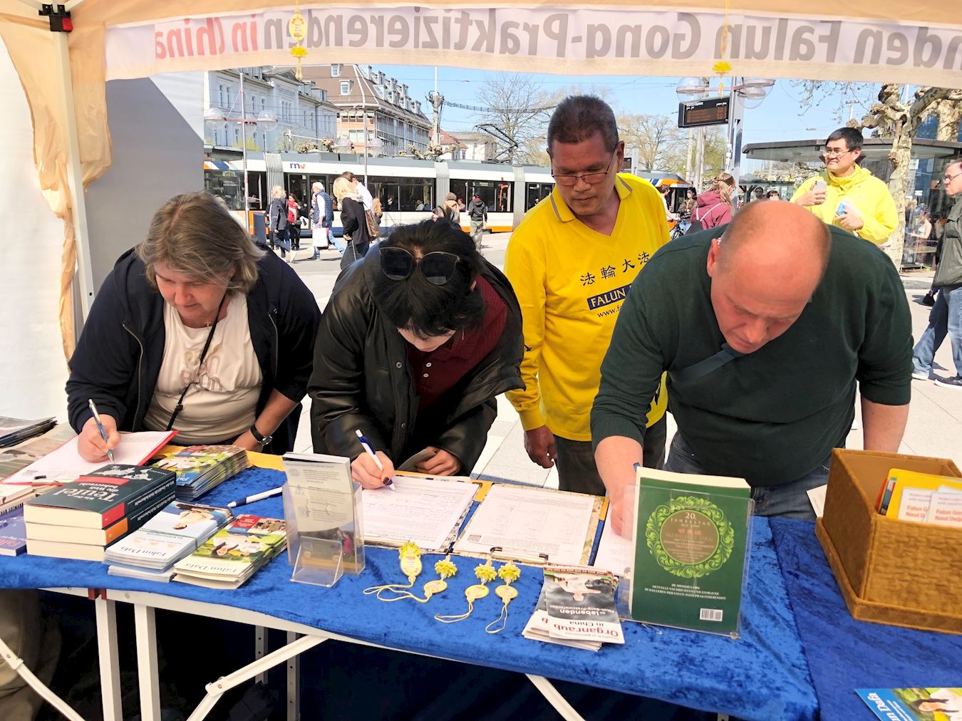 Prolaznici su potpisivali peticije za prekid progona Falun Dafa