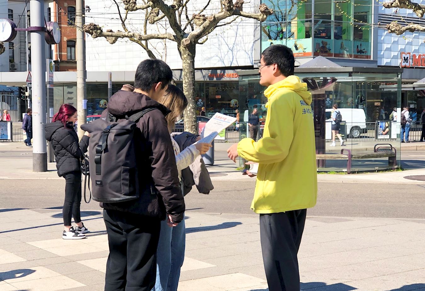 Praktikanti u njemačkoj metropolitanskoj regiji Rhine-Neckar nedavno su održali dva skupa kako bi predstavili Falun Dafa i razotkrili kako Komunistička partija Kine (KPK) progoni ovu duhovnu disciplinu više od dva desetljeća. Prvi skup održan je u Mannheimu 22. ožujka, a drugi je održan u Heidelbergu 5. travnja.