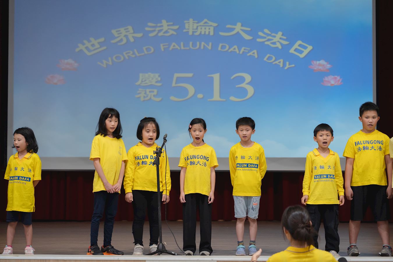 Praktikanti iz svih društvenih slojeva i dobnih skupina su tog dana zajedno učili Fa i dijelili svoja nedavna kultivacijska iskustva. Mali praktikanti su recitirali pjesme iz knjige Hong Yin i pjevali „Falun Dafa je dobar“ kako bi izrazili svoju zahvalnost Učitelju.