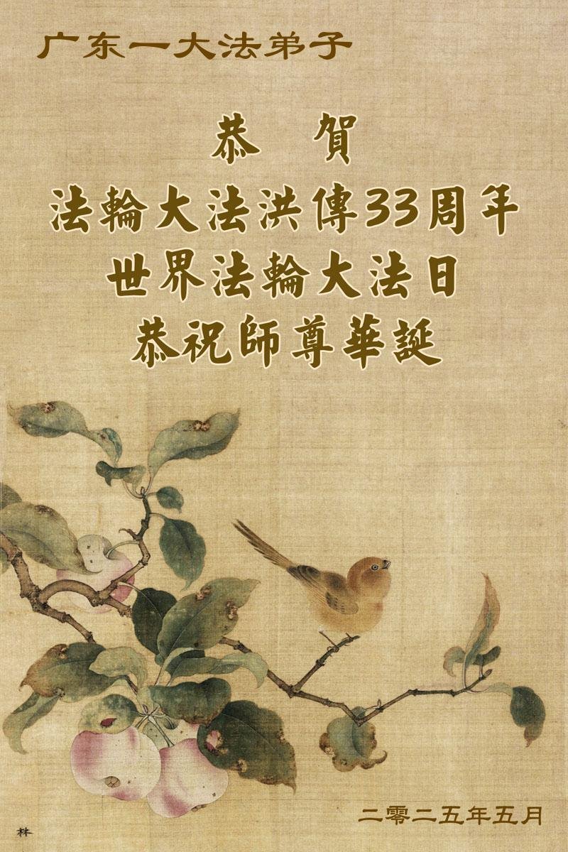 U ovom izveštaju predstavljamo izbor od 18 čestitki koje su poslali praktikanti Falun Dafe iz provincije Guangdong, Kina, povodom proslave posebnog događaja 13. maja 2025. godine: 26. Svetskog dana Falun Dafe i rođendana Učitelja Li Hongdžija.