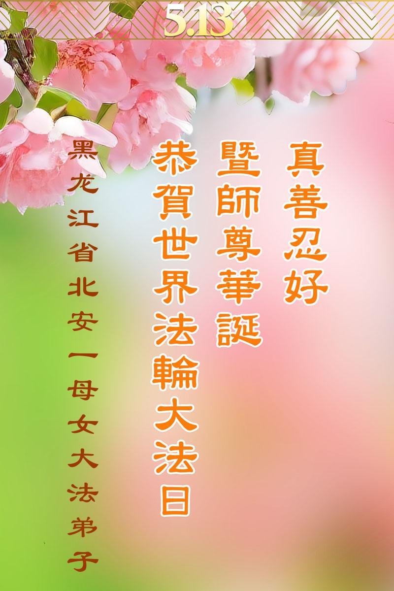 U ovom izveštaju predstavljamo izbor od 22 čestitke koje su poslali praktikanti Falun Dafe iz provincije Hejlungđang, Kina. Praktikanti su zahvalni Učitelju što je predstavio principe Istinitosti-Blagosti-Trpeljivosti i na tome kako im je ta praksa koristila. Zavetovali su se da će biti marljiviji u kultivaciji i pomoći većem broju ljudi da saznaju koliko je Falun Dafa divan.