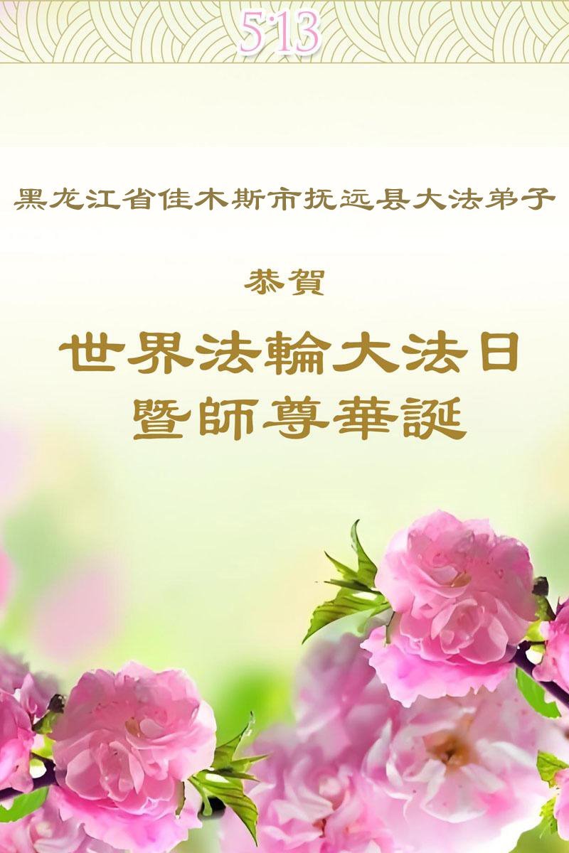 Praktikanti Falun Dafa iz Jiamusija žele poštovanom Učitelju sretan rođendan i slave Svjetski dan Falun Dafa!