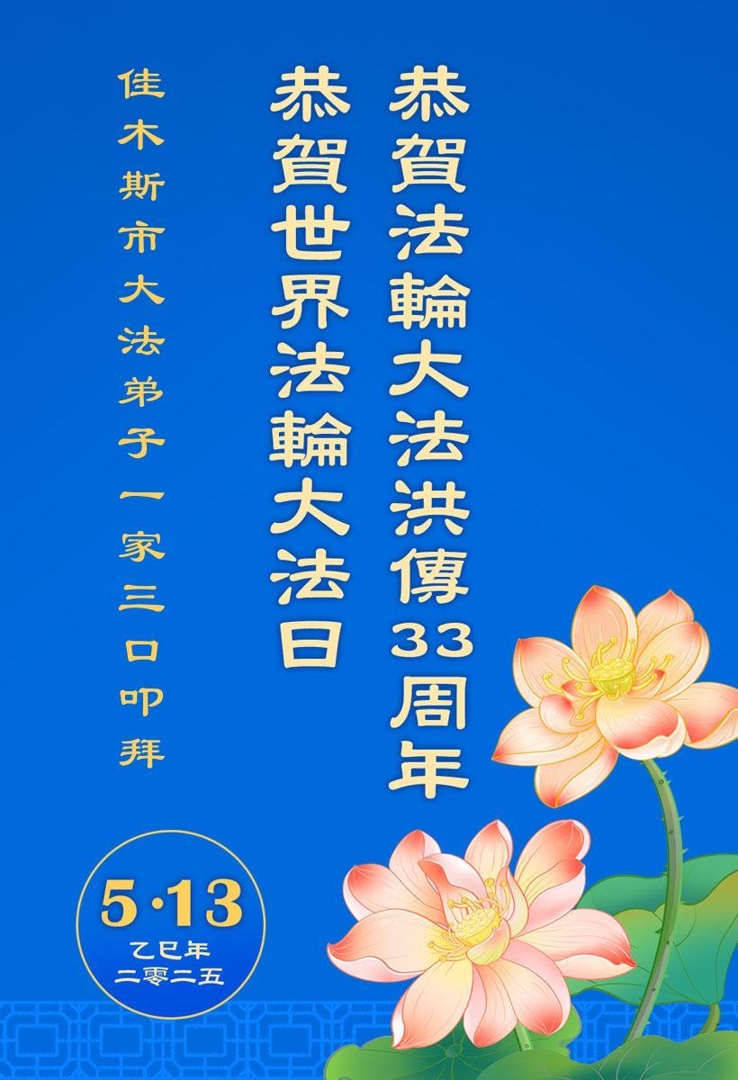 U ovom izvješću prezentiramo selekciju od 18 čestitki koje šalju praktikanti Falun Dafa iz Jiamusija iz kineske provincije Heilongjiang, povodom posebne prigode 13. svibnja 2025.: 26. Svjetskog dana Falun Dafa i rođendana Učitelja Li Hongzhija.