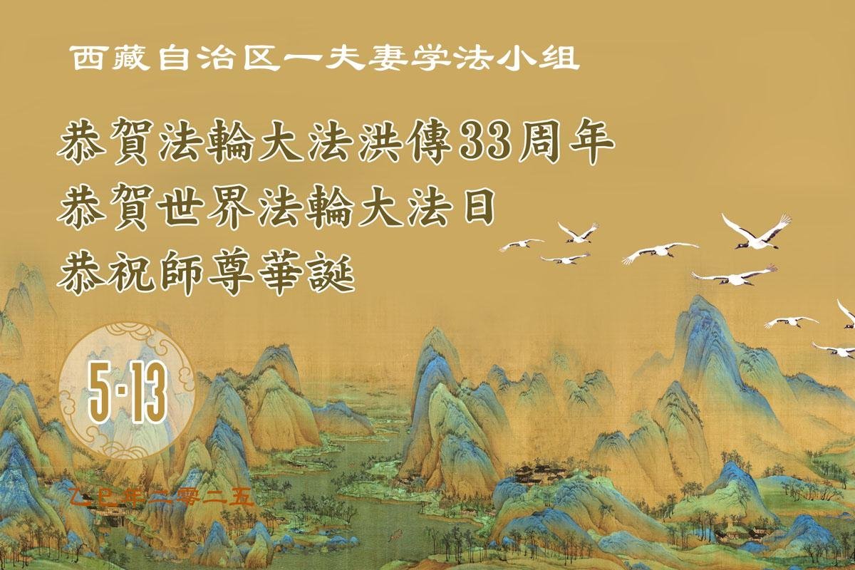 Na ovaj Svetski dan Falun Dafe, 33. godišnjicu od predstavljanja ove prakse javnosti, praktikanti iz 31 provincije, opštine i autonomne regije slave jubilej. Zahvalni su što su Dafa praktikanti; zahvaljuju Učitelju Li Hongdžiju, osnivaču prakse, što ih je vodio tokom ovih godina i žele mu srećan rođendan.