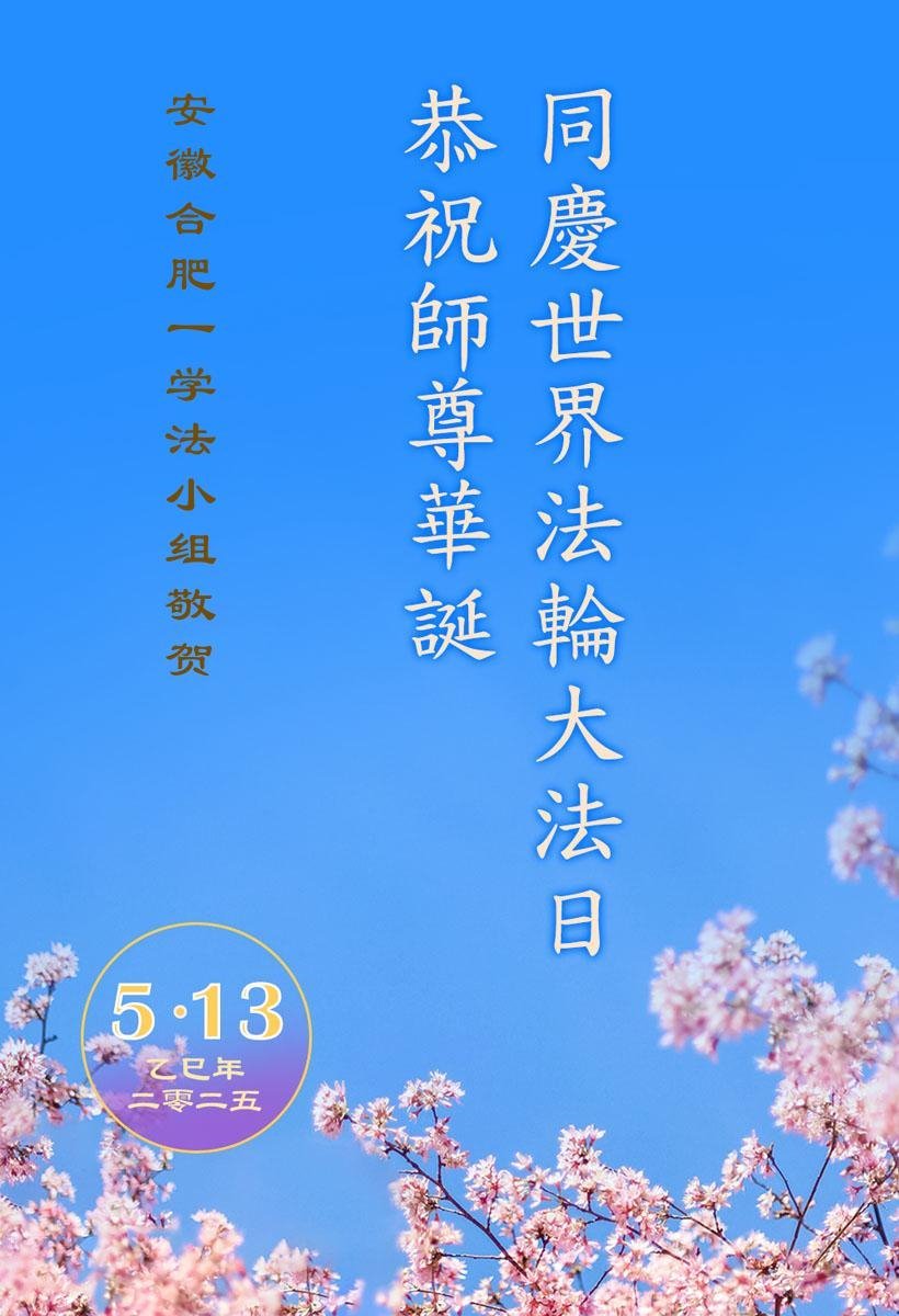 Falun Dafa praktikanti iz provincije Anhui žele poštovanom Učitelju srećan rođendan i proslavljaju Svetski dan Falun Dafe!