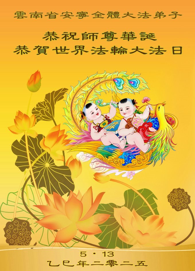 Falun Dafa praktikanti iz provincije Junan žele poštovanom Učitelju srećan rođendan i proslavljaju Svetski dan Falun Dafe!