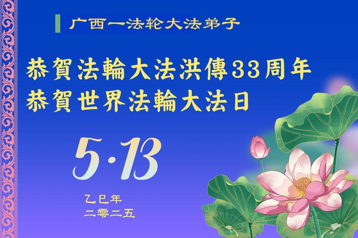 Falun Dafa praktikanti iz Guangsija žele poštovanom Učitelju srećan rođendan i proslavljaju Svetski dan Falun Dafe!
