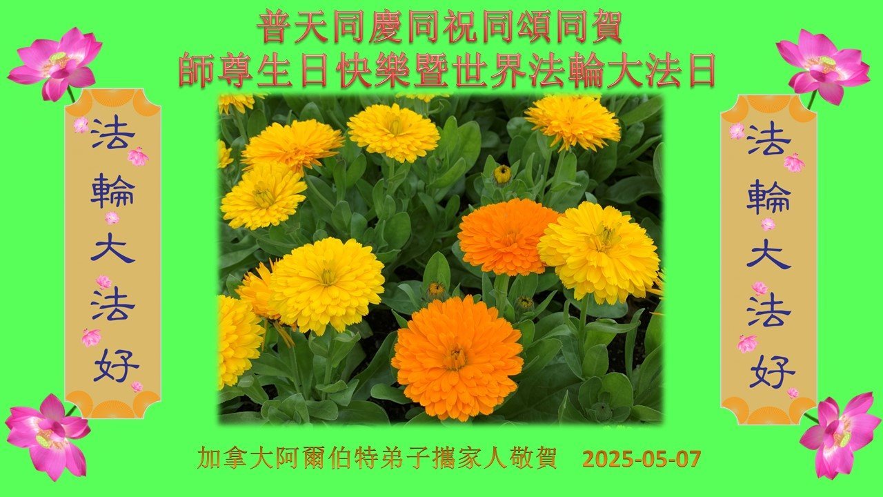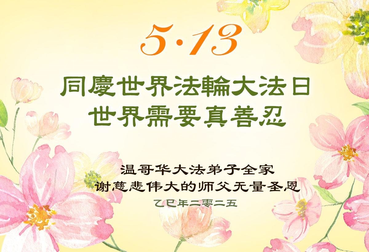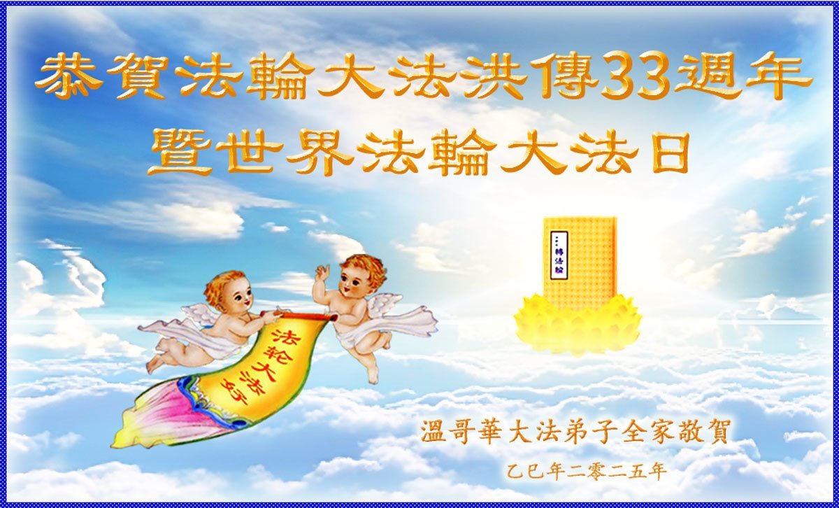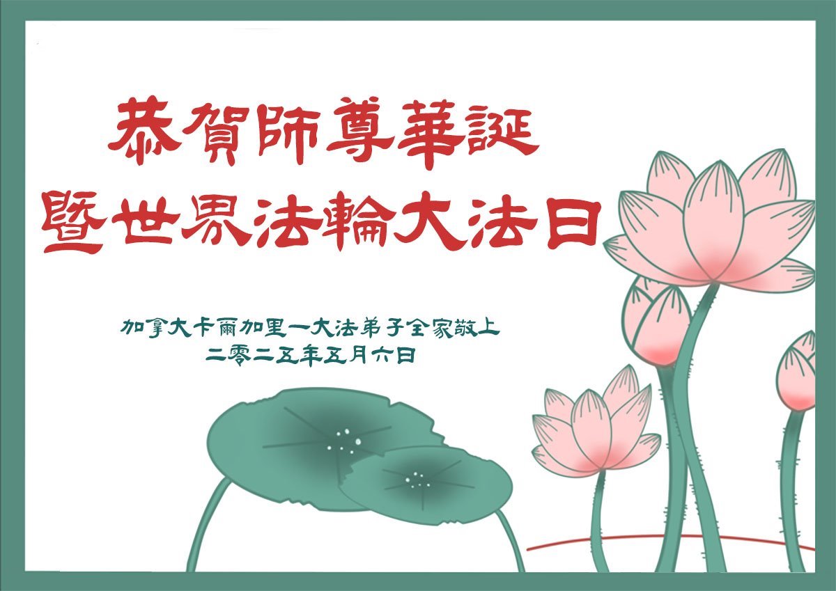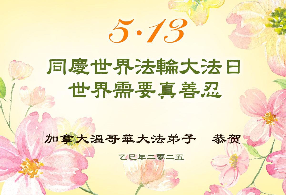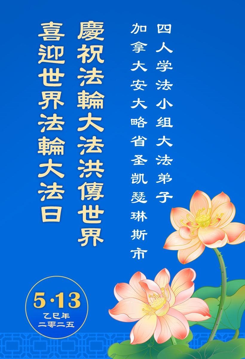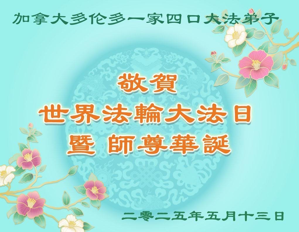 Praktikanti u Kanadi slave Svetski dan Falun Dafe i 33. godišnjicu predstavljanja Falun Dafe javnosti. Takođe s poštovanjem žele poštovanom Učitelju srećan rođendan i izražavaju zahvalnost za Učiteljevo saosećajno spasenje.