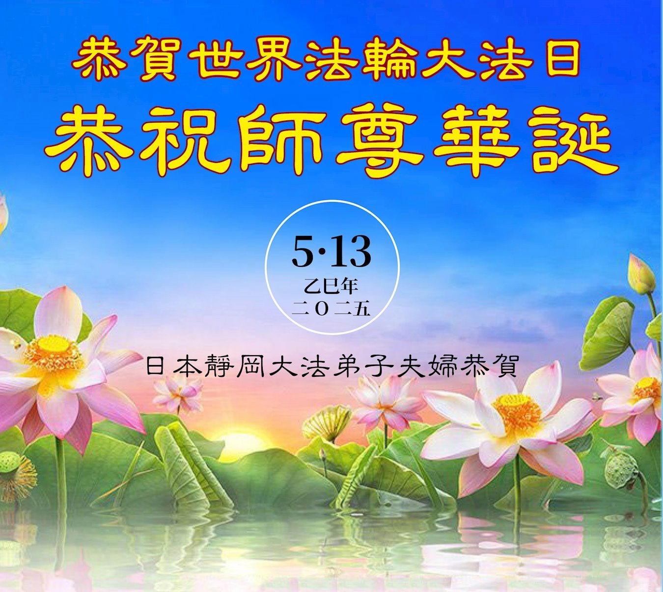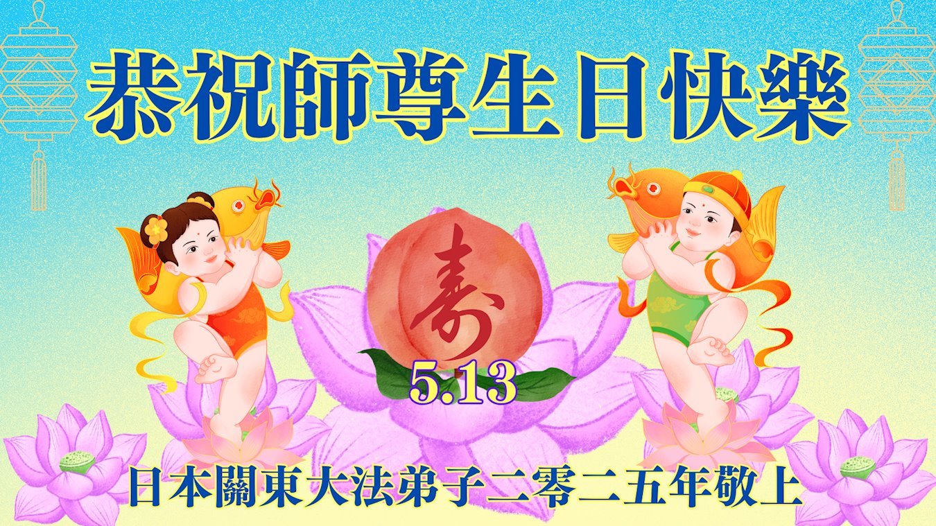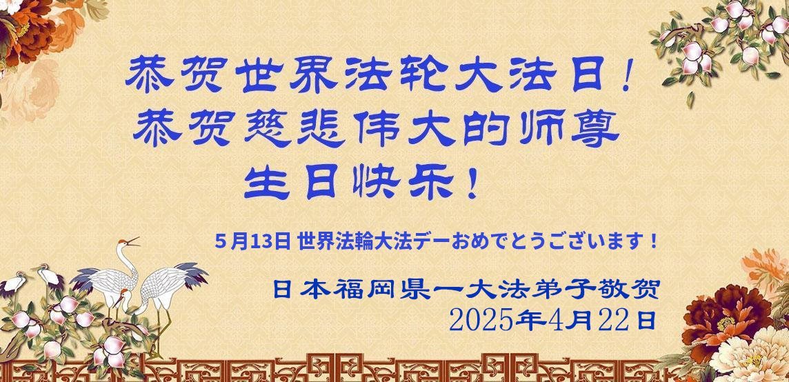 Praktikanti u Japanu slave Svetski dan Falun Dafe i 33. godišnjicu predstavljanja Falun Dafe javnosti. Takođe s poštovanjem žele poštovanom Učitelju srećan rođendan i izražavaju zahvalnost za Učiteljevo saosećajno spasenje.