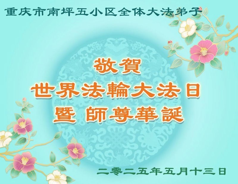 Falun Dafa praktikanti iz Čongkinga žele poštovanom Učitelju srećan rođendan i proslavljaju Svetski dan Falun Dafe!