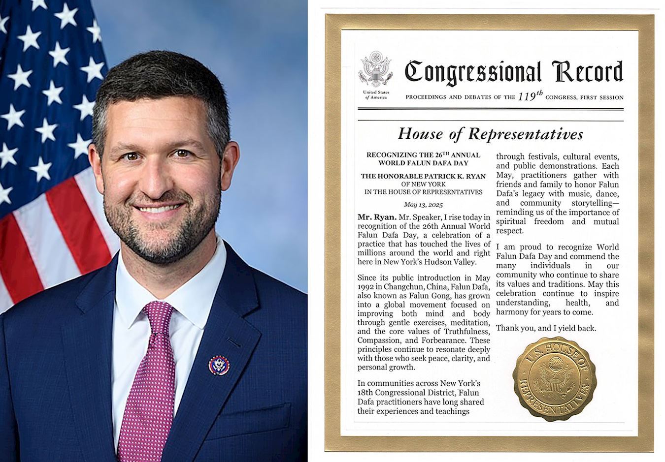 Zastupnik Patrick Ryan objavio je Kongresni zapisnik. U zapisniku piše: „Gospodine predsjedavajući, danas ustajem u znak priznanja 26. godišnjici Svjetskog Falun Dafa dana, slaveći praksu koja je dotakla živote miliona ljudi širom svijeta i ovdje u dolini Hudson u New Yorku.”