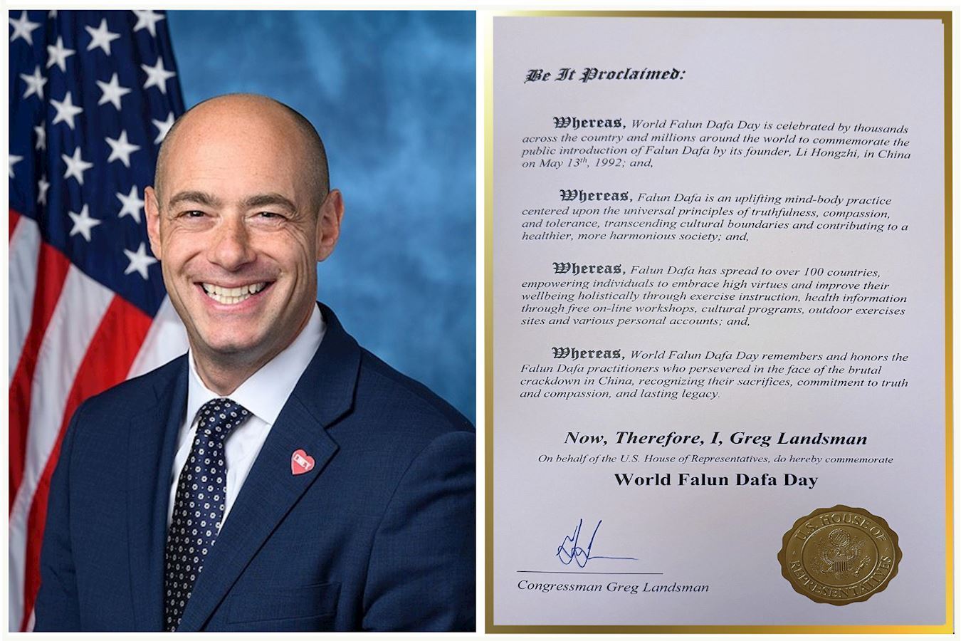 Zastupnik Chris Smith iz New Jerseyja, kopredsjedavajući Izvršne komisije Kongresa za Kinu, u svom je videu rekao: „Svakome od vas sretan Svjetski Falun Dafa dan! Želim da vam se zahvalim na vašoj upornosti, posebno s obzirom na tešku represiju koju provodi Komunistička partija Kine. Solidarni smo s vašim pravom da praktikujete kako smatrate prikladnim i aplaudiram vam zbog vaše tolerancije i dobrote. I još jednom, želim vam sretan današnji dan.“